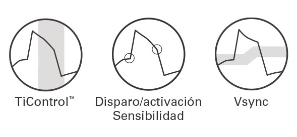 TiControl permite definir límites mínimos y máximos de tiempo en cualquier extremo del ciclado espontáneo ideal del paciente; de esta forma crea un margen de oportunidad para que el paciente cicle espontáneamente y asegura una intervención oportuna en situaciones problemáticas.