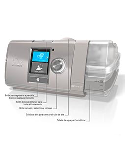 Con el sistema de control de clima AirCurve 10 ST, usted recibe niveles constantes y cómodos de temperatura y humedad durante la terapia. Está compuesto por el humidificador HumidAir ™, que está integrado en la máquina, y el tubo de aire caliente ClimateLineAir™.